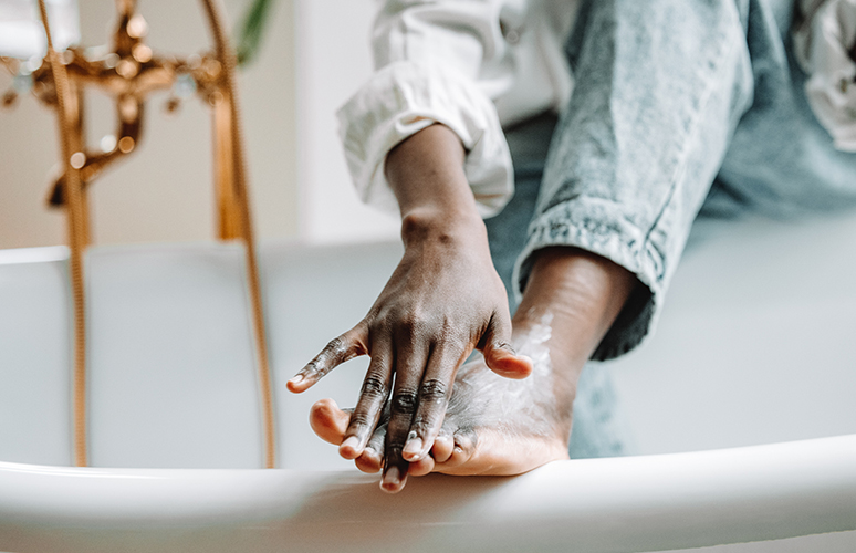 5. Крема для смягчения кожи ступней. Решить проблему слишком плотной кожи на пятках поможет ванночка из горячей воды, немного ароматического масла и пемза.